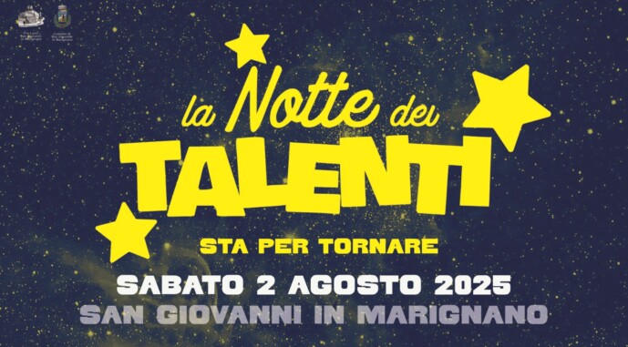 Queste parole ogni anno a San Giovanni in Marignano, riecheggiano durante “La Notte dei Talenti”, la serata più magica e spensierata dell’estate romagnola, in cui canti, balli, barzellette ed esibizioni ai limiti dell’impossibile si mescolano per regalare gioia e stupore ai tantissimi spettatori.